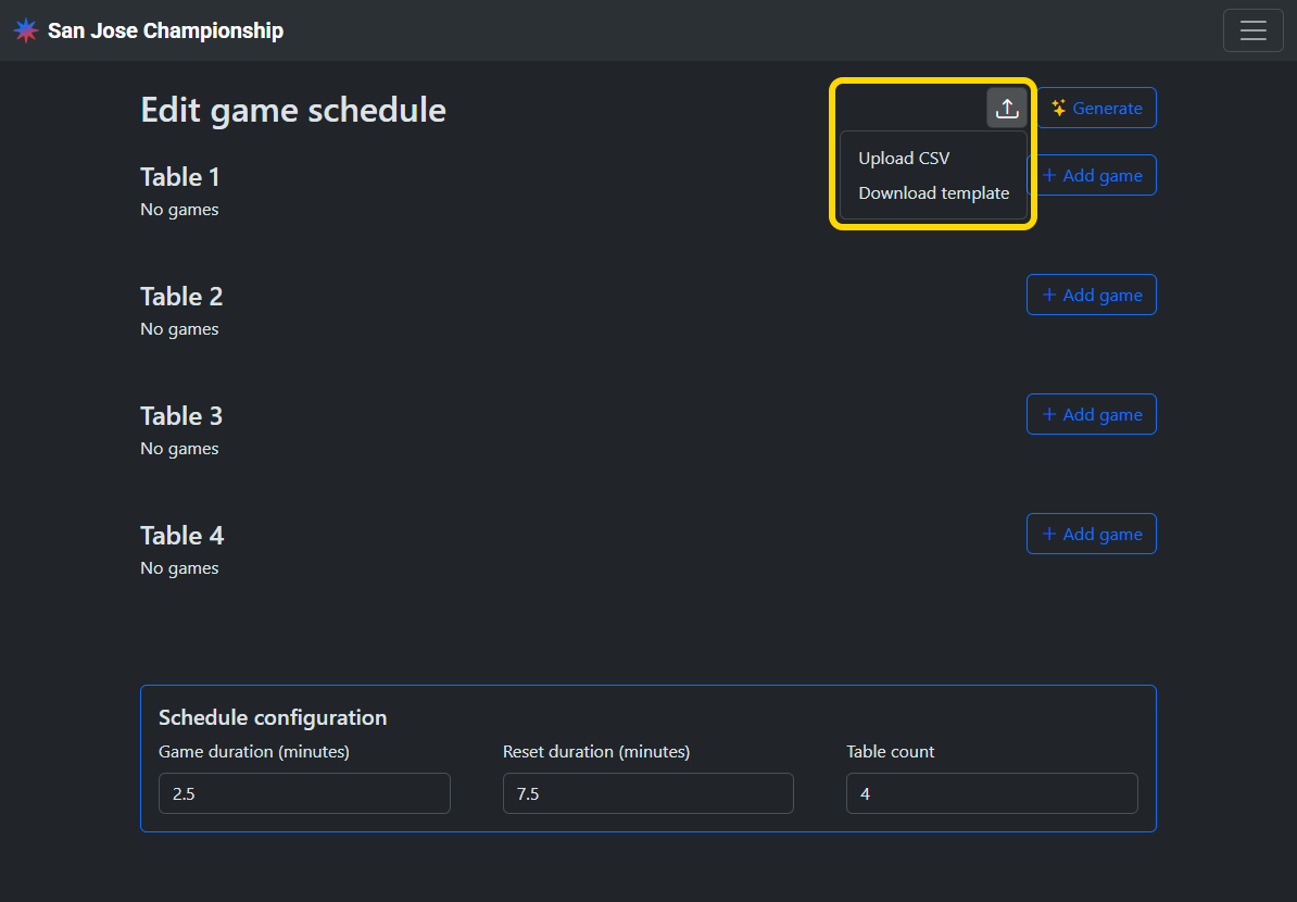 Alternatively, you can upload a schedule in CSV format. A template CSV can be downloaded from the menu.